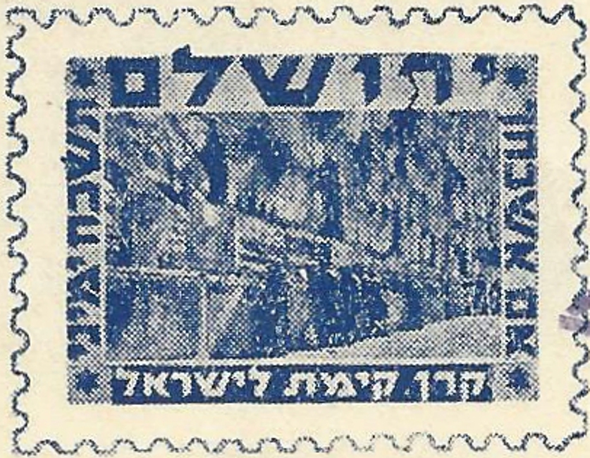 בפינה השמאלית העליונה של חזית האיגרת הודפסה תווית של הקרן הקיימת לישראל ובה ציור של הכותל המערבי בעיר העתיקה של ירושלים. בחלקה התחתון של התווית נרשמו המילים "קרן קימת לישראל", ובהיקף התווית צוטט הפסוק "אם אשכחך ירושלם תשכח ימיני" (תהילים, מזמור קלז, פסוק ה).